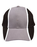 Description: 6 panel structured laid back front. Pre-curved peak with 3 colours on peak and crown. Short velcro crossover.